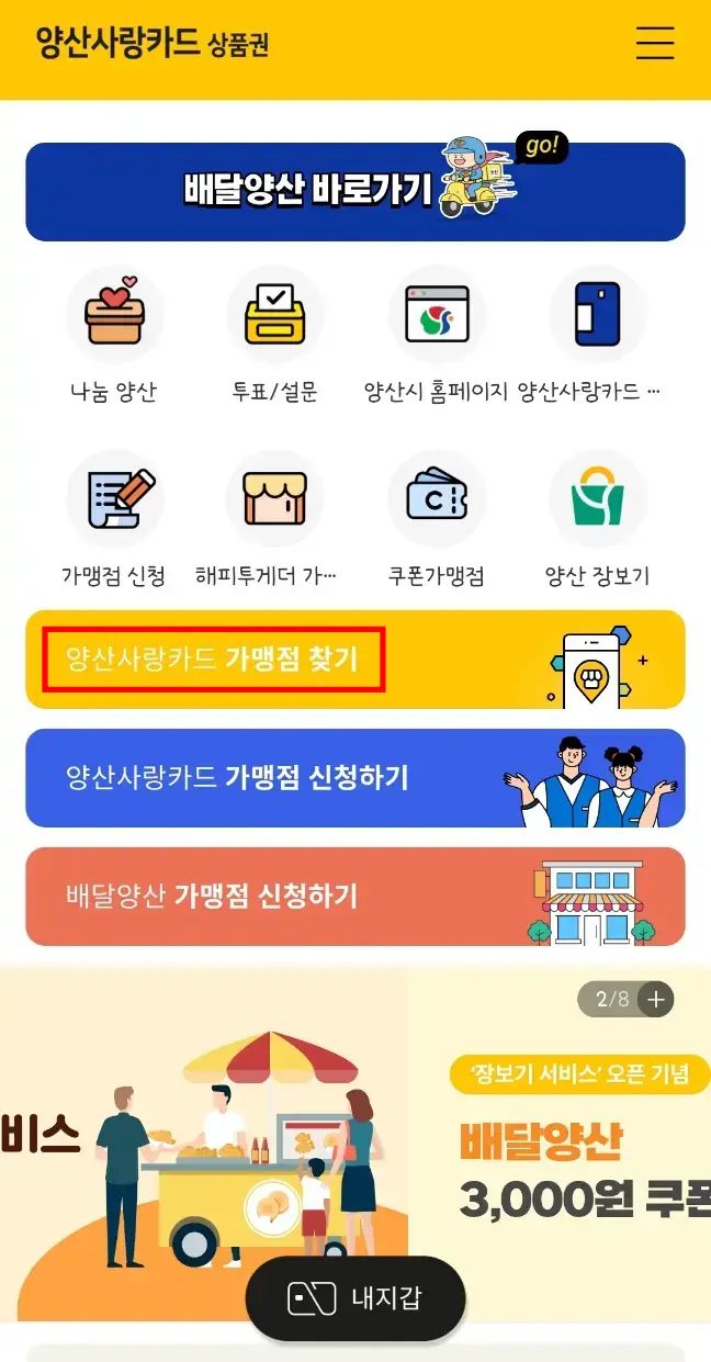 양산사랑카드는 양산시 관내 IC카드 단말기를 사용하는 점포에서 사용 가능하며, 앱 내에서 확인이 가능합니다.