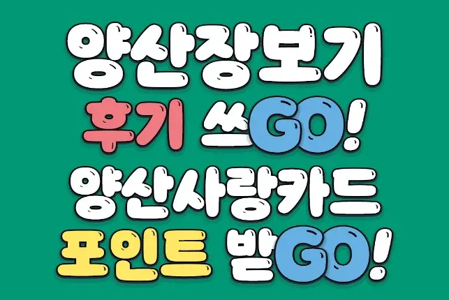 양산사랑카드 앱에서 양산장보기 이용 후 지역카페, 블로그, 개인 SNS 등에 이용후기를 올리면 포인트를 지급해주는 이벤트가 진행되고 있습니다. 이벤트 기간은 2022년 12월 20일까지이며, 당첨자 발표일은 12월 23일입니다.