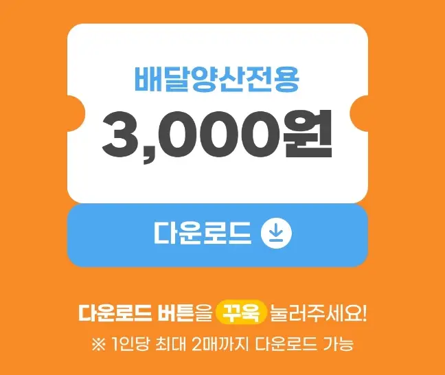 양산장보기 오픈 기념으로 12월8일부터 12월 23일까지 배달비 0원 이벤트를 진행하고있습니다. 배달양산전용 3,000원 쿠폰도 받을 수 있습니다. 3,000원 쿠폰은 1인 2매까지 다운로드 가능합니다.